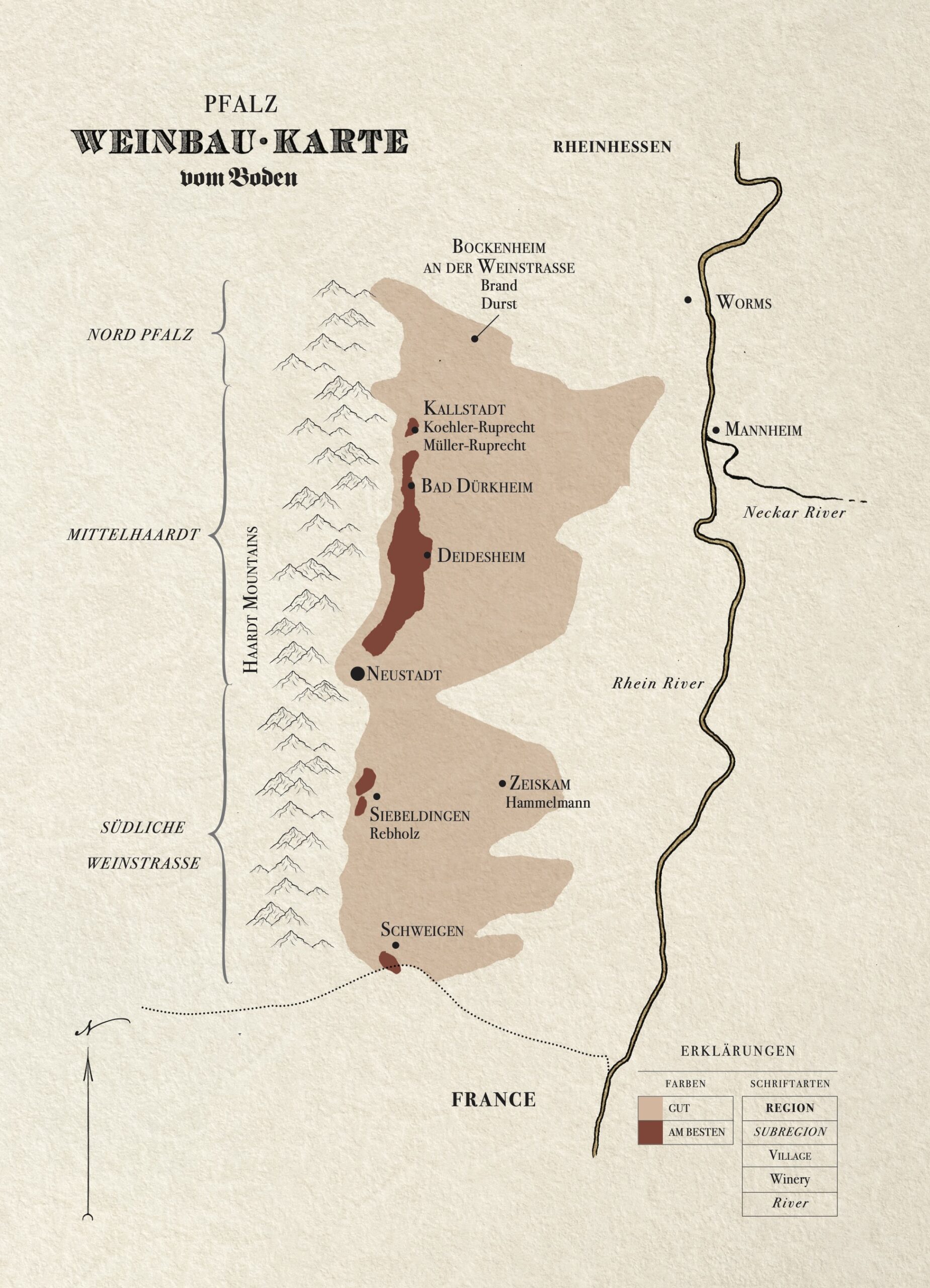 As we wrote for the Brand brothers: While we are only about five miles south of Keller’s village (Flörsheim-Dalsheim), in this short trip we cross from the Rheinhessen into the Pfalz, from fame to obscurity. The “famous” Pfalz, the Mittelhaardt region, is a good 45-minutes south. Here, however, in the north, in the Andreas Durst and the Brand brother’s village of Bockenheim, well, things are a bit quieter; the historic and gilded estates of the south, with their tended gardens and bustling tourism, give way to a quieter, more gritty, working agricultural feel in the north.