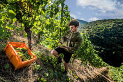 Then, Max acquired an older-vine parcel in the Grand Cru Ohligsberg, the most famous site rising up and around his hometown village of Wintrich. And then we heard about his own small line of wines, sourced from less than two hectares, total, in both the Ohligsberg and the Goldtröpfchen vineyards. In the following years he added micro-parcels in Wintrich’s Geierslay vineyard (yes, this is the name of a vineyard and of his family estate, presumably named after the vineyard) and the less-well-known yet hugely impressive site Treppchen vorm Berg. He has since begun working with a little Pinot Noir, planted by his father decades ago in the Ohligsberg vineyard.