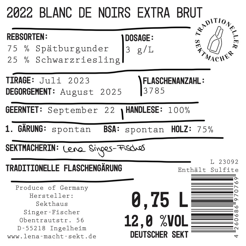 Lena SektBlanc de Noirs Extra Brut Sekt 2022 (750ml)