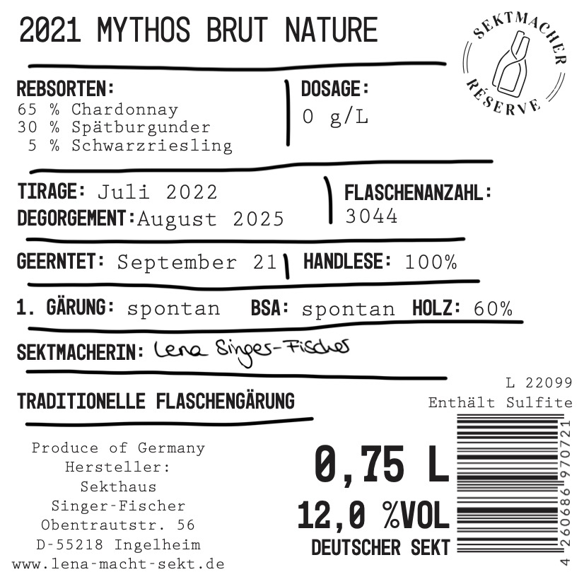 Lena SektMythos Réserve Brut Nature Sekt 2021 (750ml)