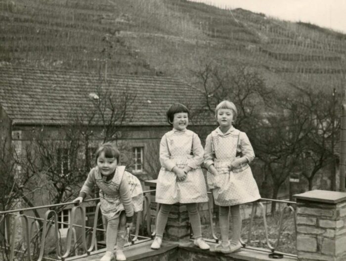 Yet for all the well-priced, honest wine they make, the Hilds are also engaged in cultural preservation. Look at the photograph below; these are Matz’s sisters, photographed in the 1960s, in front of a wall of terraced vineyards. I’ve sat on that very porch, exactly where those girls are. What you see now is a forest; the terraces have gone fallow… almost.