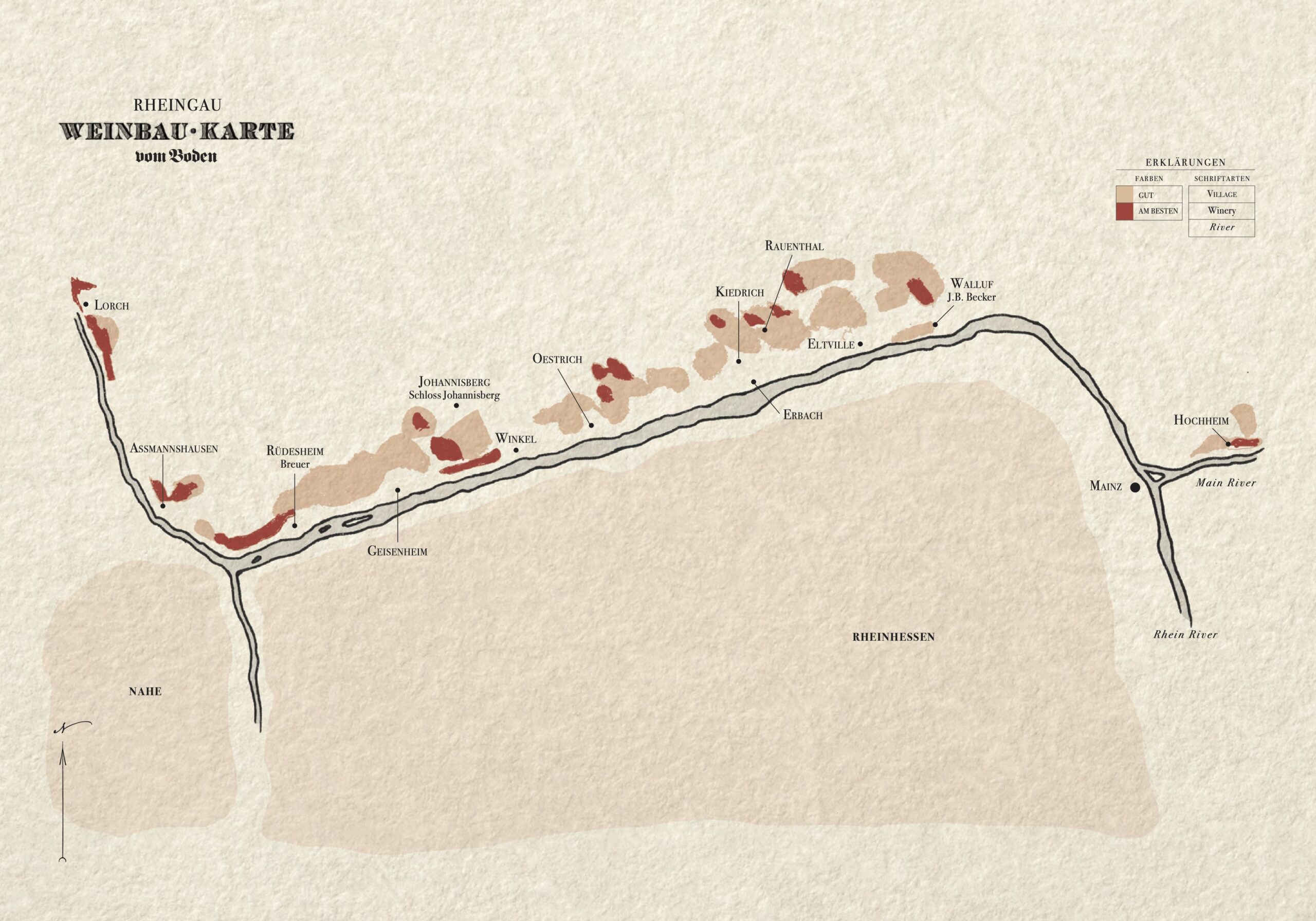 The Rheingau, like Bordeaux, was in many ways the pioneer of a more considered and thoughtful viticulture. The growers of the Rheingau were the thought-leaders a century ago. The 18th century was something of a golden era for the Rheingau. The concept of holding back the top bottles emerged here. The idea of selectively harvesting certain grapes later, the “Spätlese,” was developed here toward the end of the 18th century. The fame of this region only grew through the 19th and 20th centuries, at least up to the 1960s and 1970s.