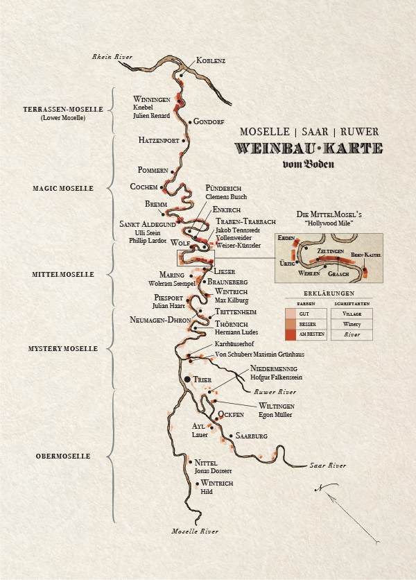 Mosel Karte: Five Subregions